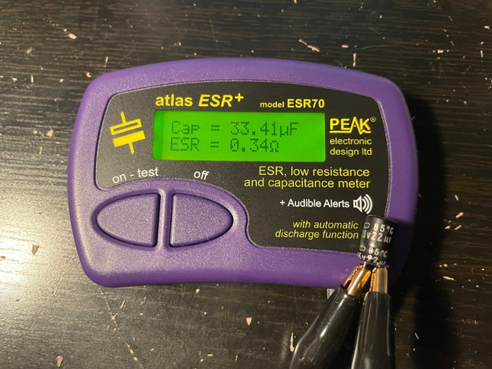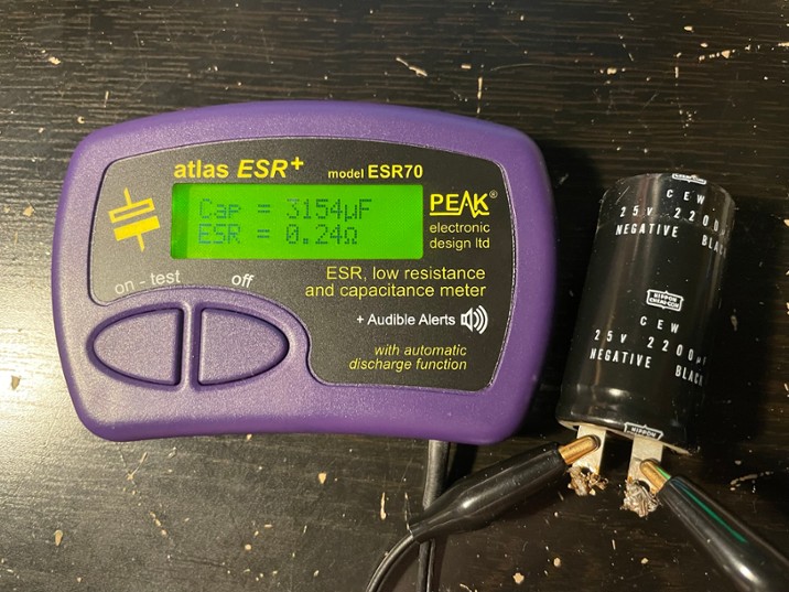 Les 3 anciens condensateurs étaient à considérer comme HS et avaient un courant de fuite assez important, causant une mesure erronée par le testeur :