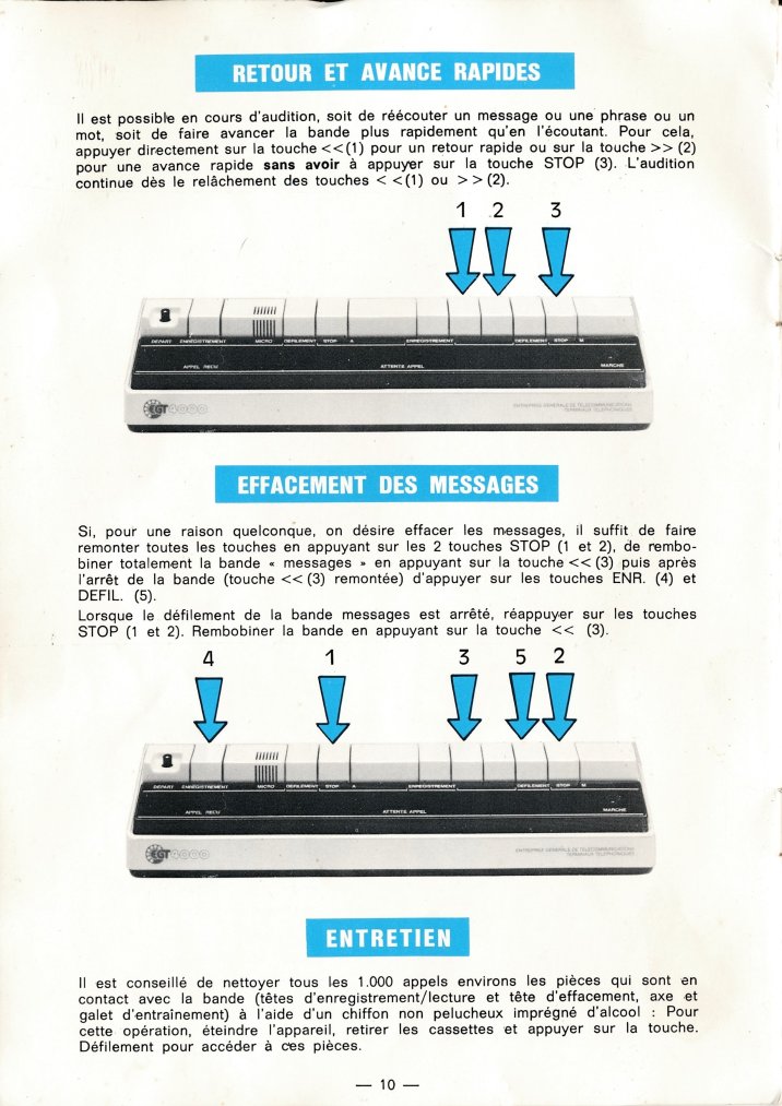 Comme dit plus haut, ce n’est pas un répondeur mais un annonceur. Quand il reçoit un appel, il lit un message d’annonce en boucle sur une cassette sans fin mais il ne prend pas de message de l’appelant.