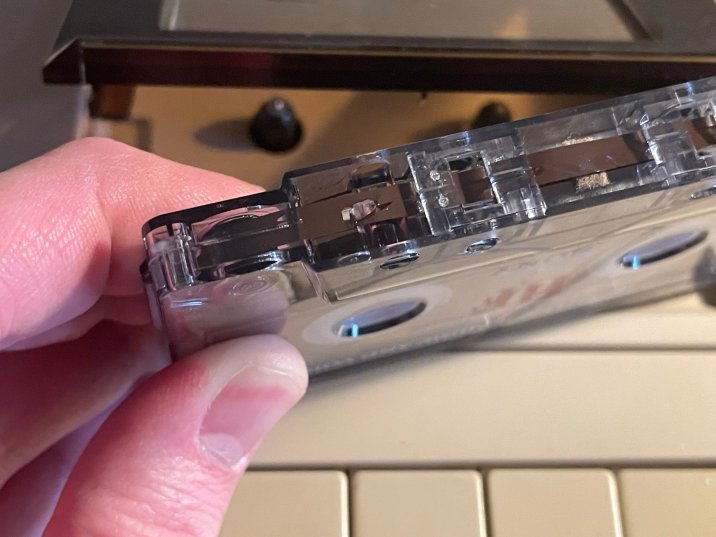 C’est donc que cette bande doit être comme avec les cassettes 8 pistes, elle doit avoir un petit bout d’aluminium collé dessus à un moment pour être détecté car un contacteur.