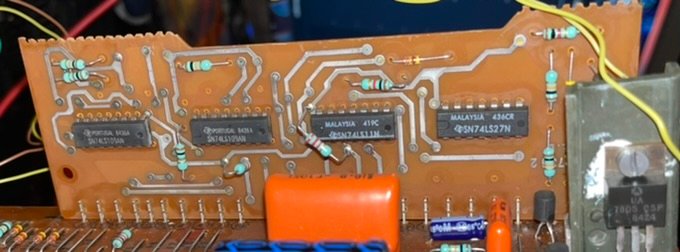 En analysant le fonctionnement interne de ce répondeur, j’ai remarqué que toute la logique de fonctionnement tenait 4 puces logiques TTL série 74. Pas de microcontrôleur ou de ROM.