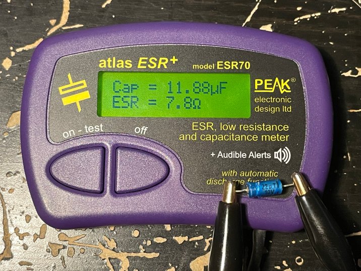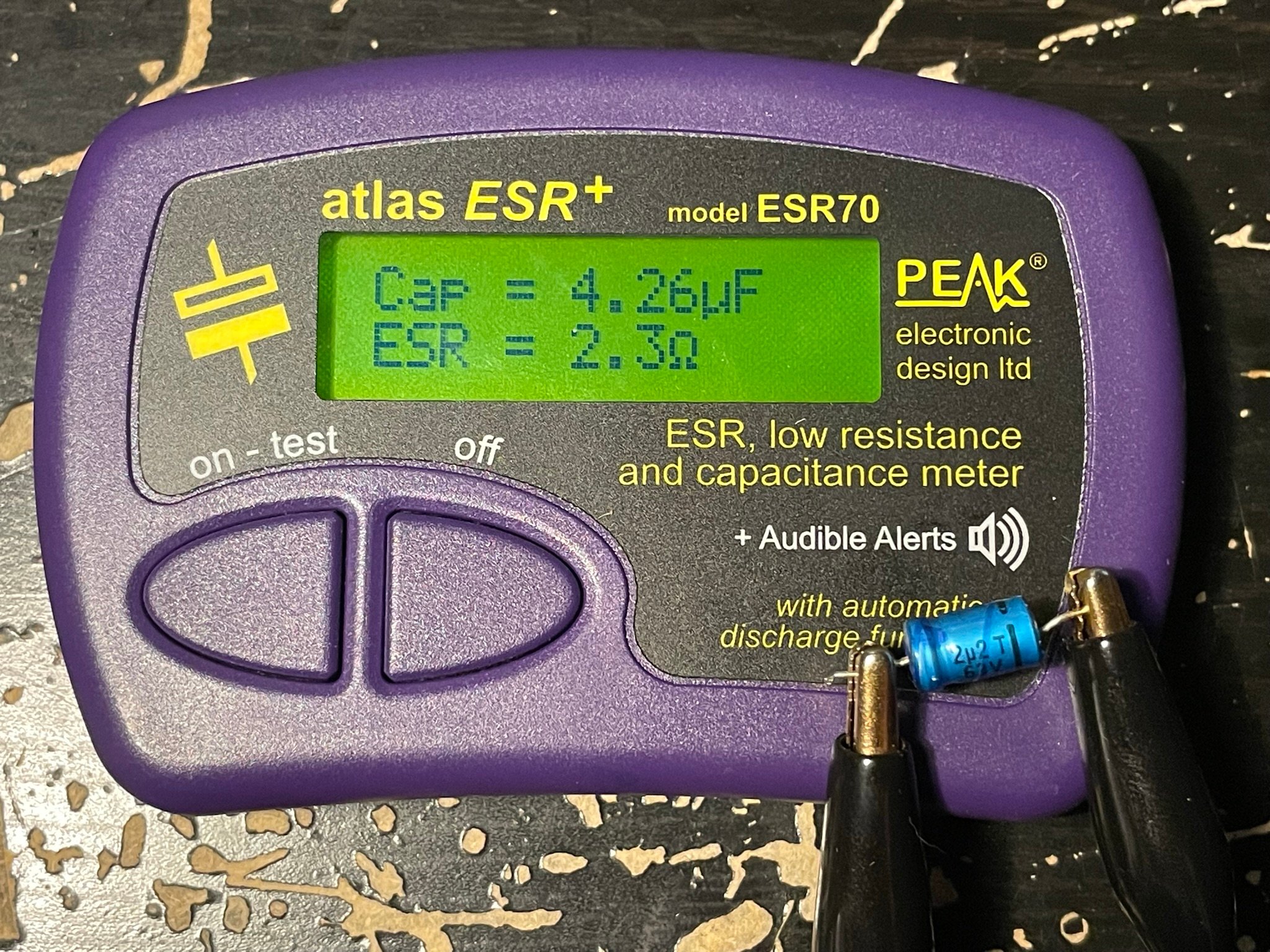 Je l’ai dessoudé, j’ai passé au testeur et là j’ai remarqué sa capacité actuelle n’était plus du tout la même que celle indiquée dessus !