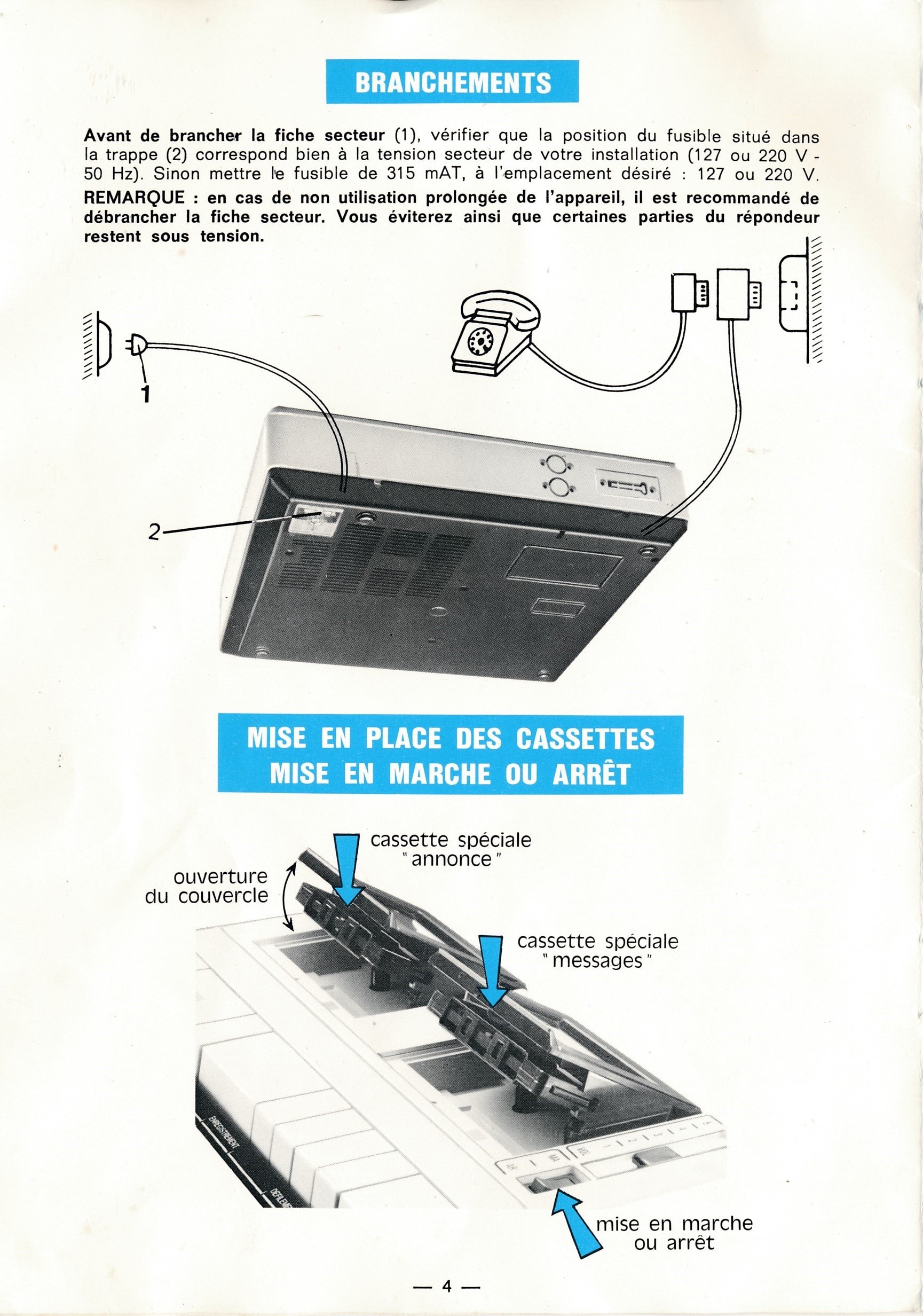 N’ayant pas de cassette sans fin sur le moment pour enregistrer une annonce et le tester sur une ligne téléphonique, j’ai juste mis une cassette ordinaire.