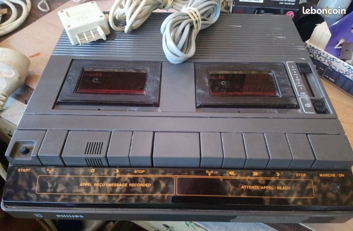 En regardant ce qu’il y avait sur LeBonCoin avec l’intitulé « répondeur cassette », j’en ai trouvé dont un complet avec son manuel et son emballage d’origine pour la somme de 9€ hors frais de ports.