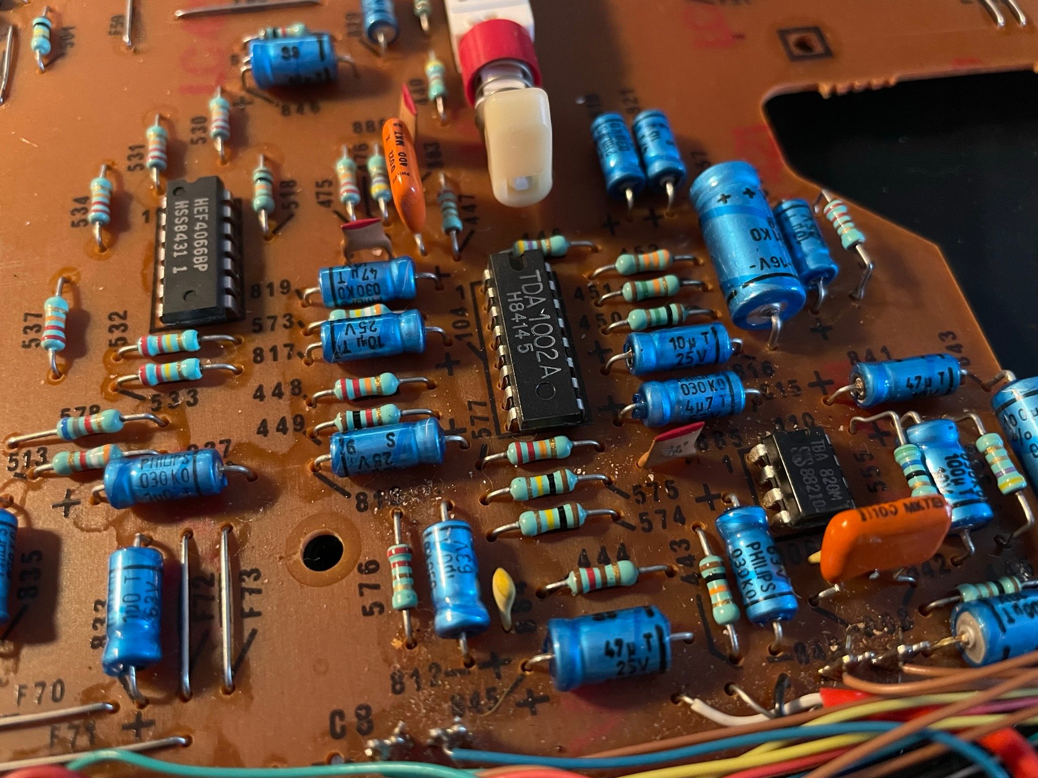 En attendant, après ce constat de condensateur défectueux, j’ai décidé de tous les remplacer parce qu’il doit sûrement en avoir d’autres dans ce état et pour redonner une jeunesse à ce répondeur.