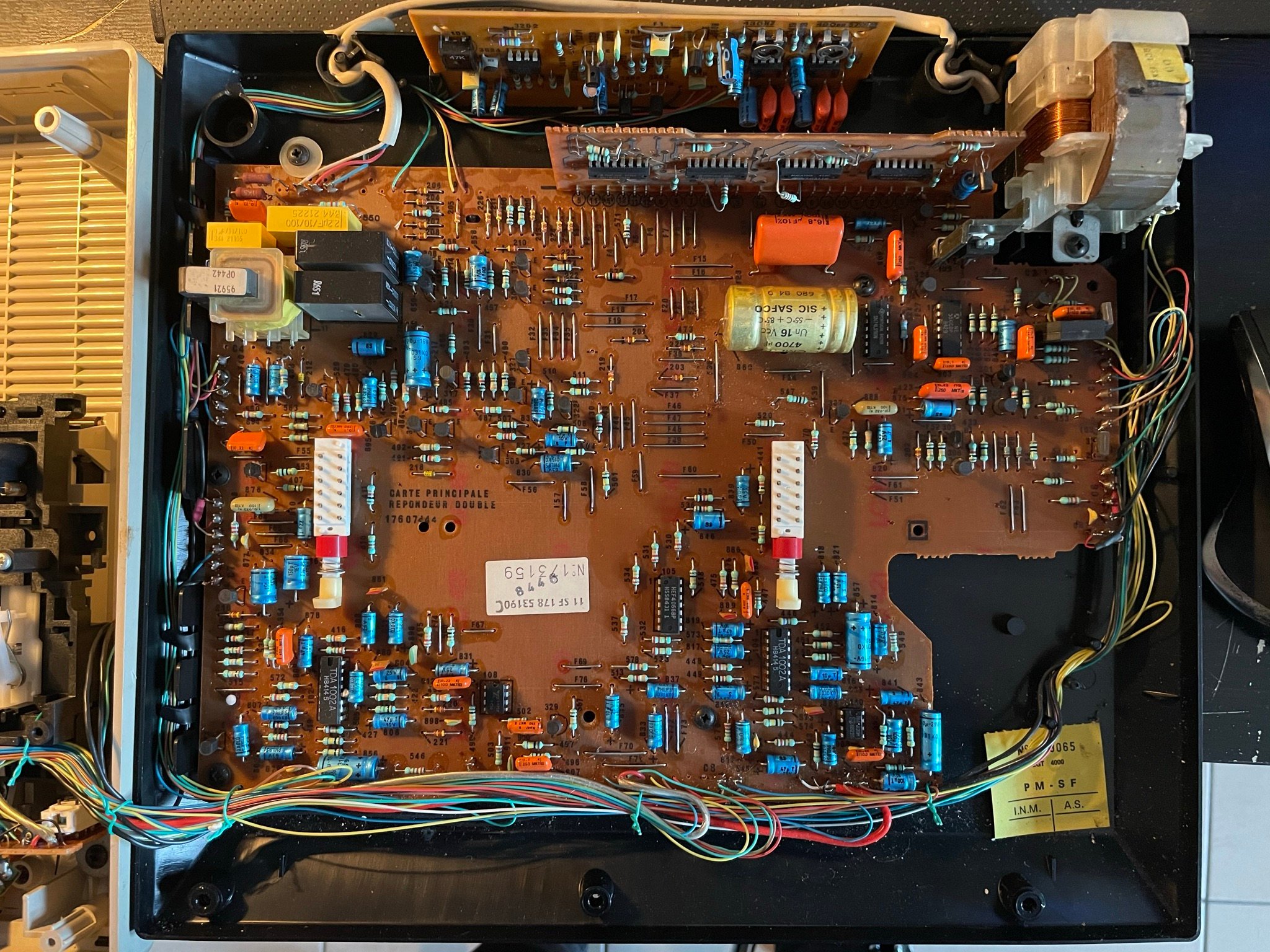 Mais malgré le remplacement de tous les condensateurs, la cassette de message d’annonce continuait à être lue en boucle sans jamais s’arrêter avant le début du message.