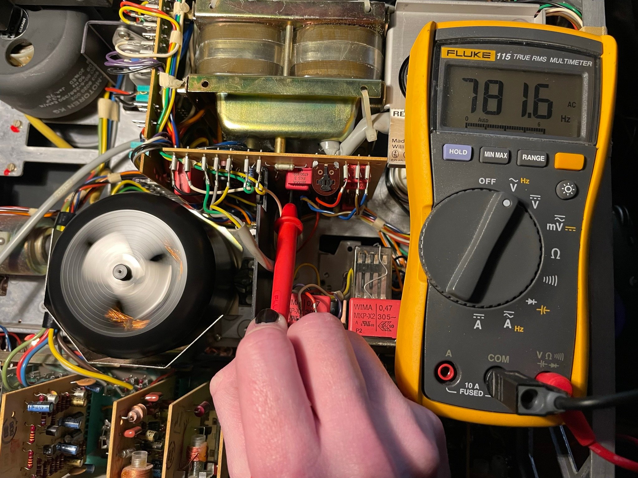 Lors de cette réparation, j’ai trouvé une date marquée avec un tampon sur le châssis, derrière le panneau avec les boutons en façade et qui indiquait « 9 Mai 1978 ».