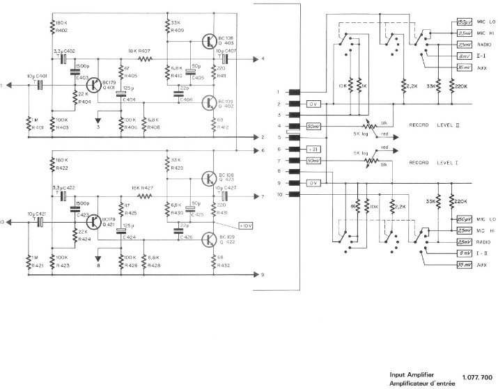 Brancher le générateur de signal sans l’allumer sur les deux voies de l’entrée auxiliaire du magnétophone, régler l’entrée de l’appareil sur l’entrée auxiliaire (bagues sur « AUX ») et mettre les potentiomètres de réglage de niveau d’entrée en façade au maximum (position 10).