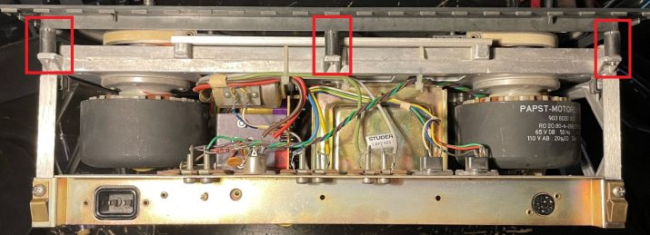 Pour refaire la calibration de l’enregistrement, il faut à nouveau ressortir le châssis du coffret et remettre les vis sur le connecteur interne à côté du connecteur d’alimentation pour mettre le fonctionnement de l’appareil hors de son coffret.