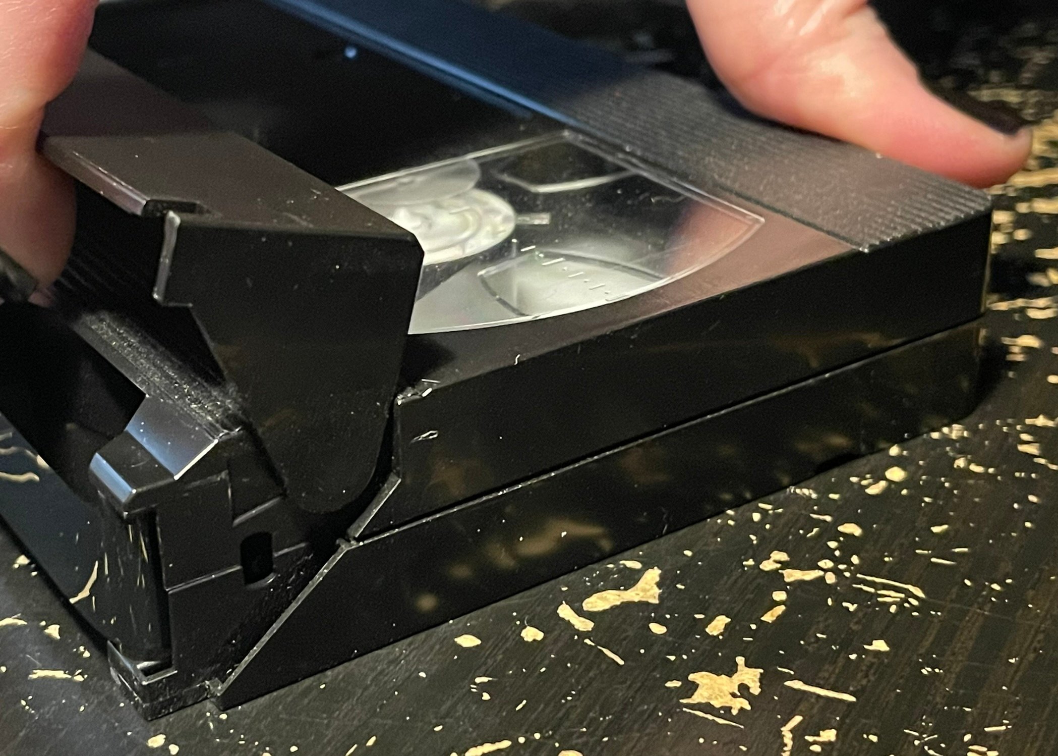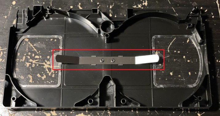 Note : Il vaut bien avancer la bande jusqu’à fin dans un magnétoscope avant le démontage de la VHS du commerce.