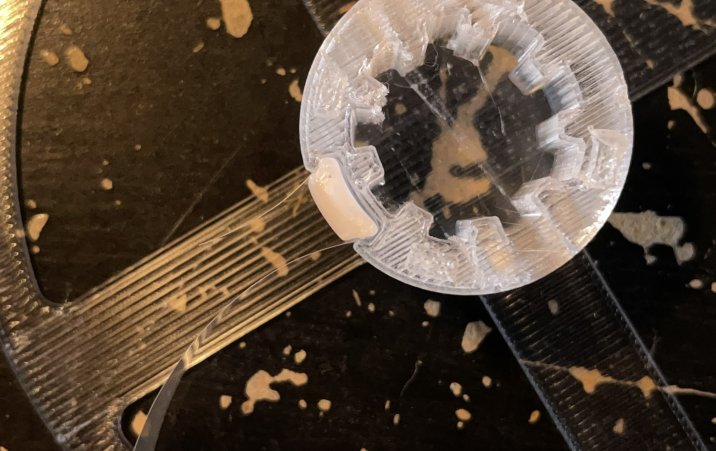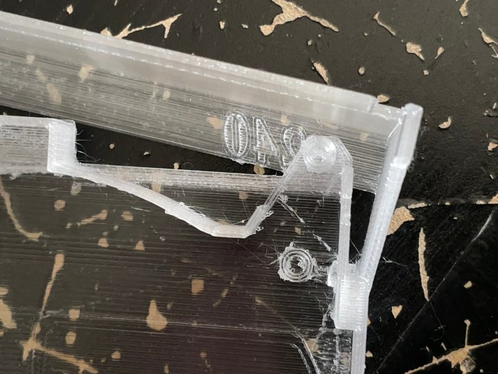Il y a pas mal de résidus d’impressions à retirer dû à la température élevée nécessaire pour la transparence.