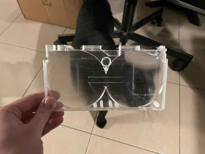 Puis j’ai continué les améliorations et quand j’ai été suffisamment content du résultat, j’ai réimprimé le tout en filament transparent.