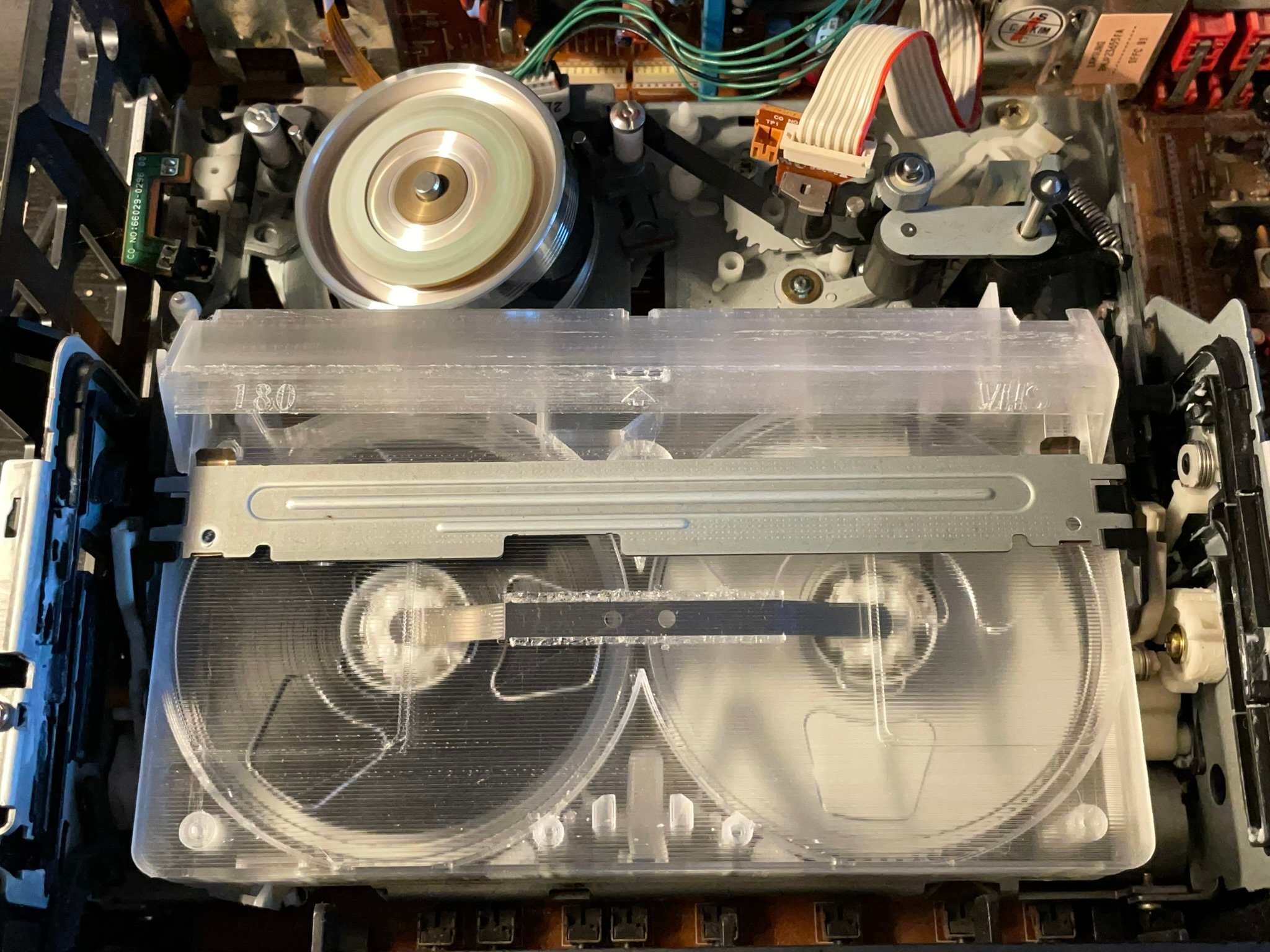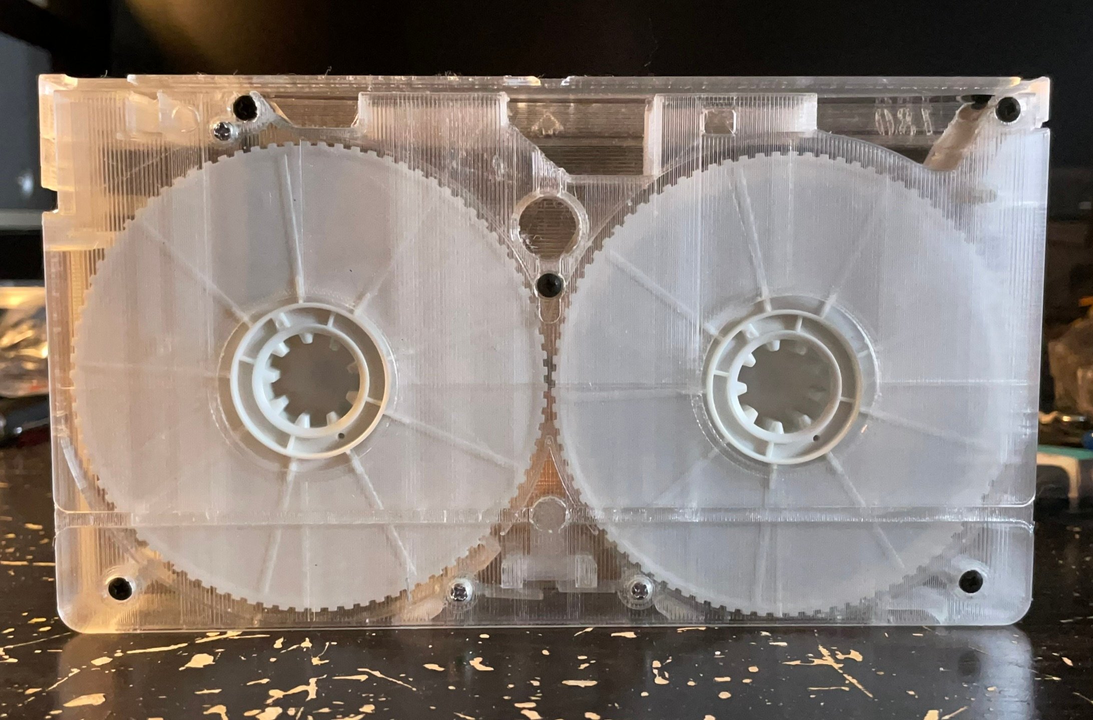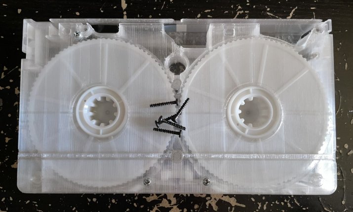 Je me suis imprimé cette attache spécialement en blanc pour bien la voir tourner dans la cassette VHS comme avec certaines cassettes audio.