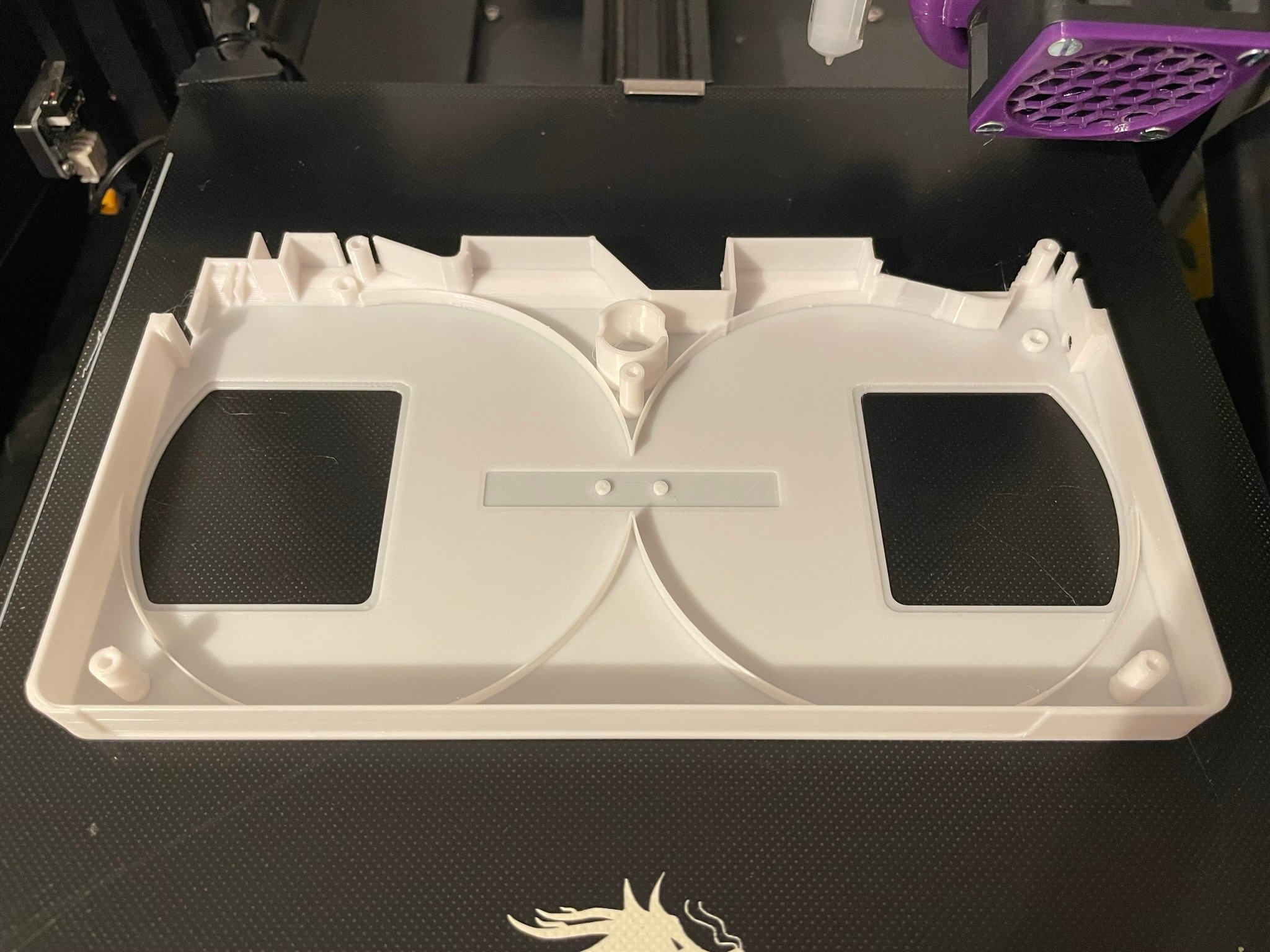 Vu qu’il s’agissait d’une VHS avec du PLA blanc ou noir et donc pas transparent, il fallait prévoir dans le modèle des fenêtres transparentes pour voir les bobines comme une VHS ordinaire.