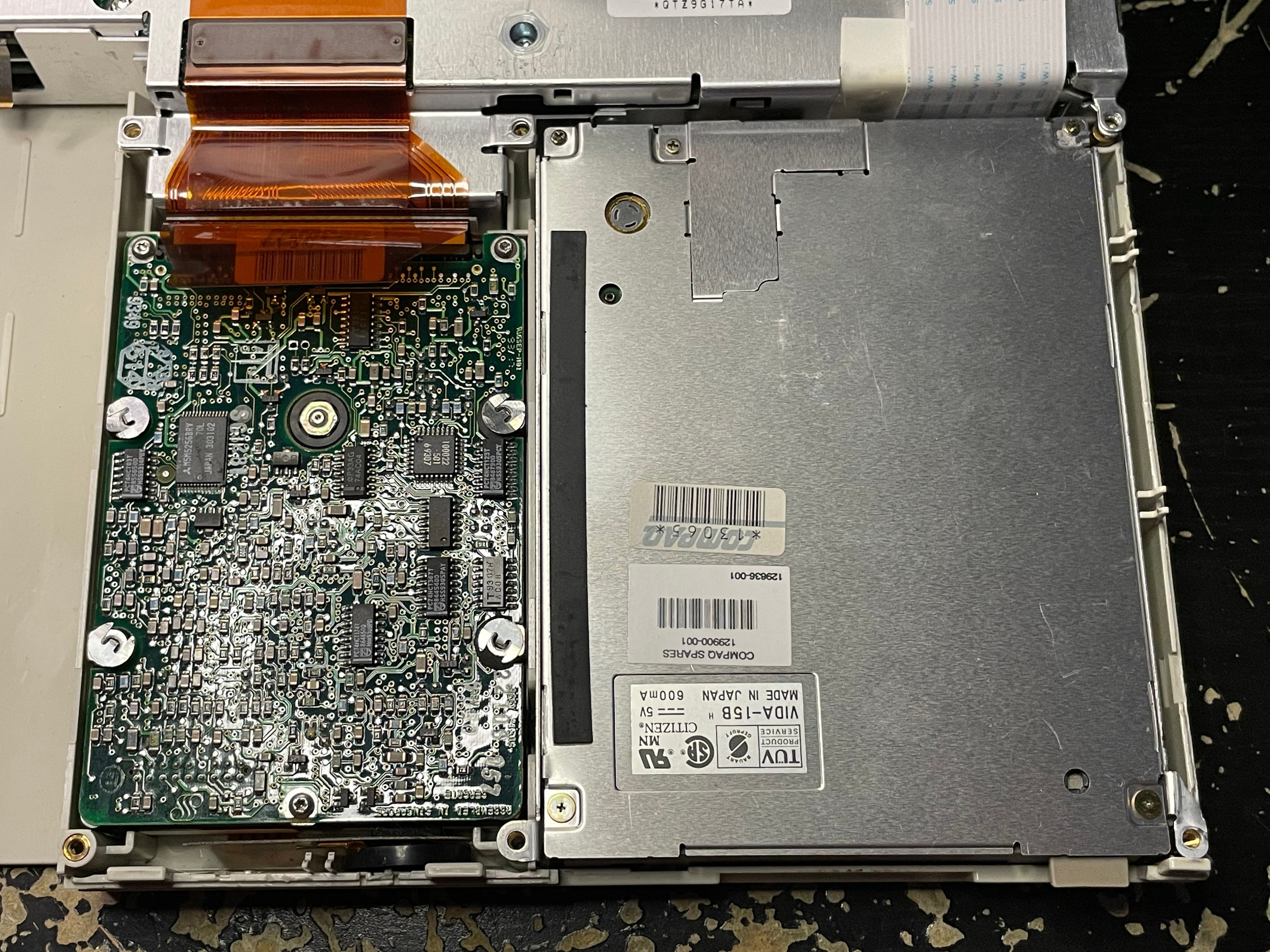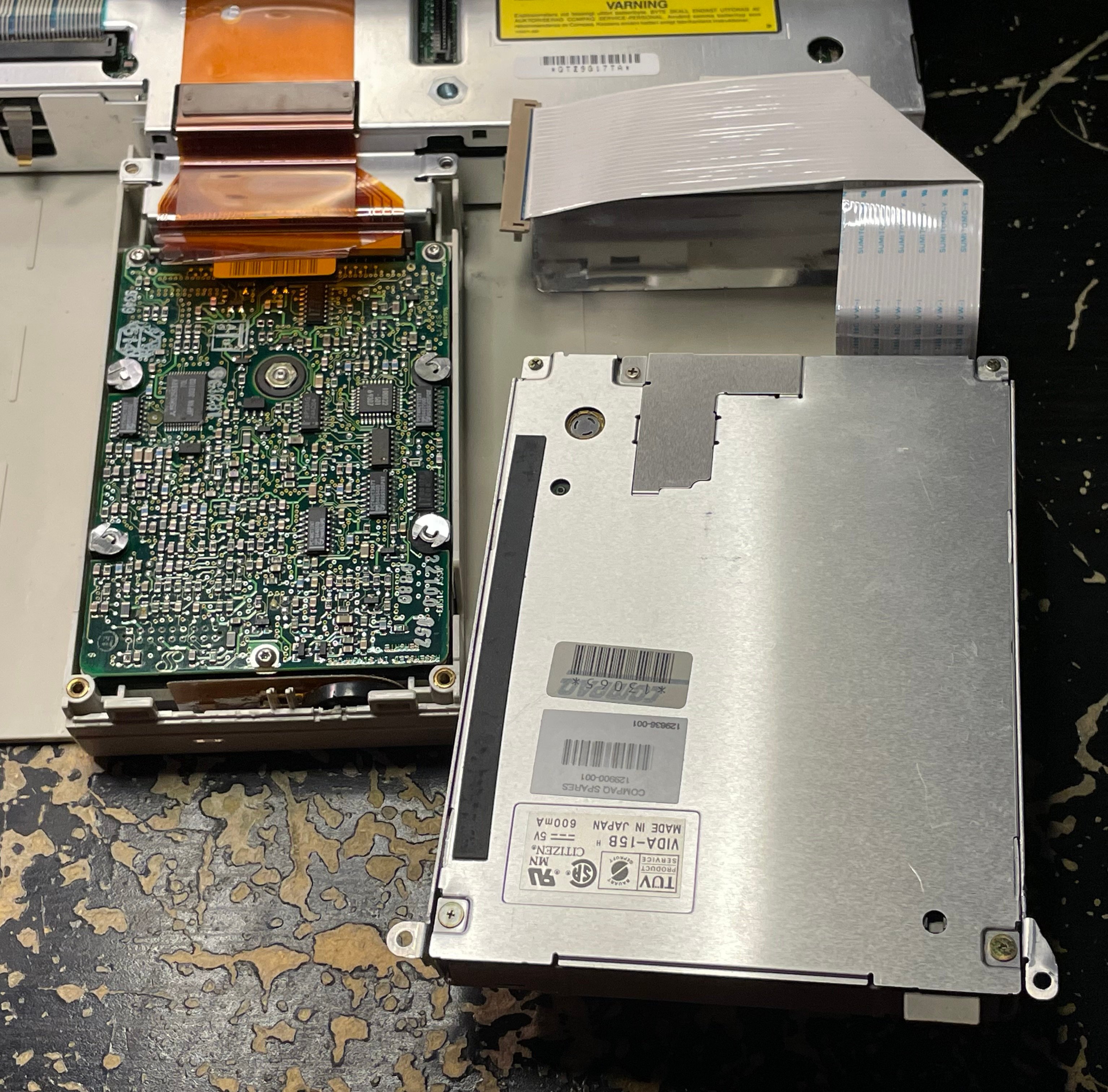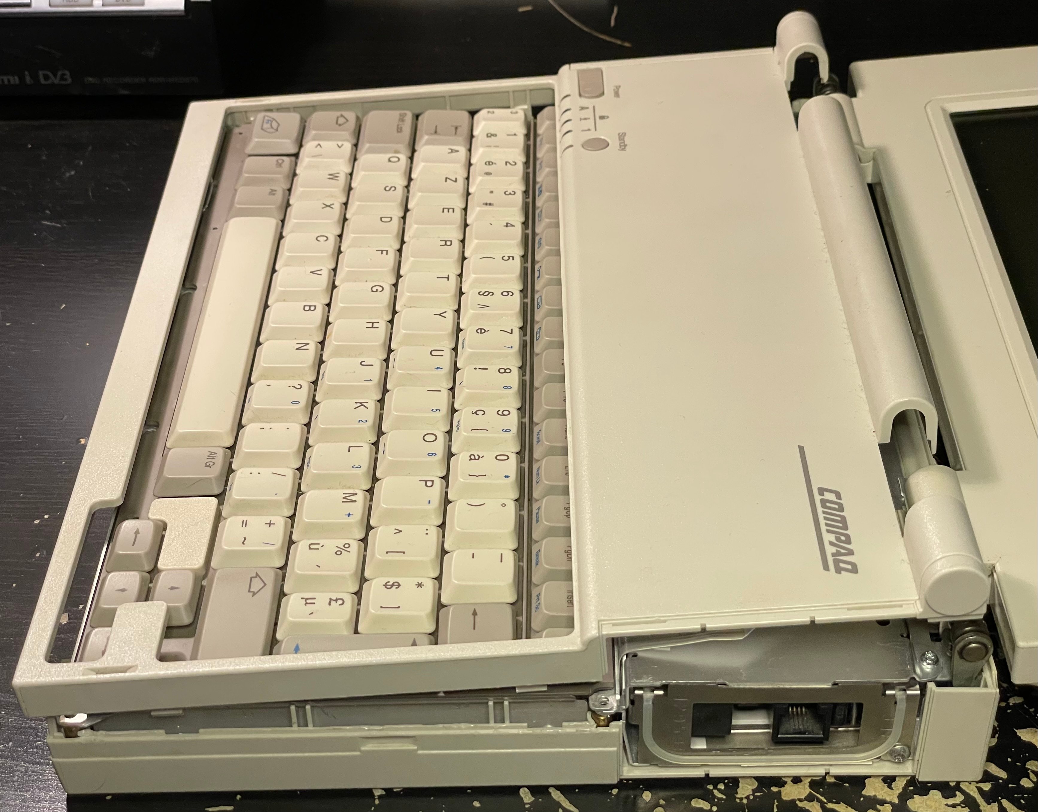 Ces derniers temps, je faisais des expérimentations de courroies maison en impression 3D avec du TPU 82A et je me suis rappelé que j'avais un ordinateur portable de 1996, un Compaq LTE Lite/25E, avec un lecteur de disquettes qui utilise une courroie pour faire tourner le disque et donc cette dernière était morte.