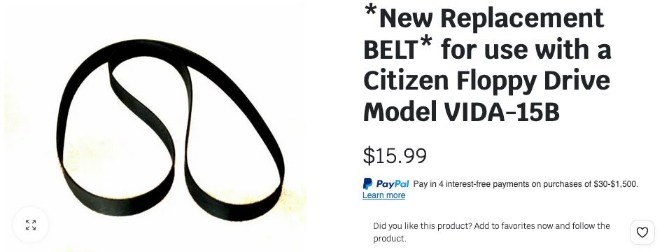Pour la curiosité, je suis allé voir si on pouvait trouver des courroies de remplacement pour ce lecteur de disquettes et à quel prix.