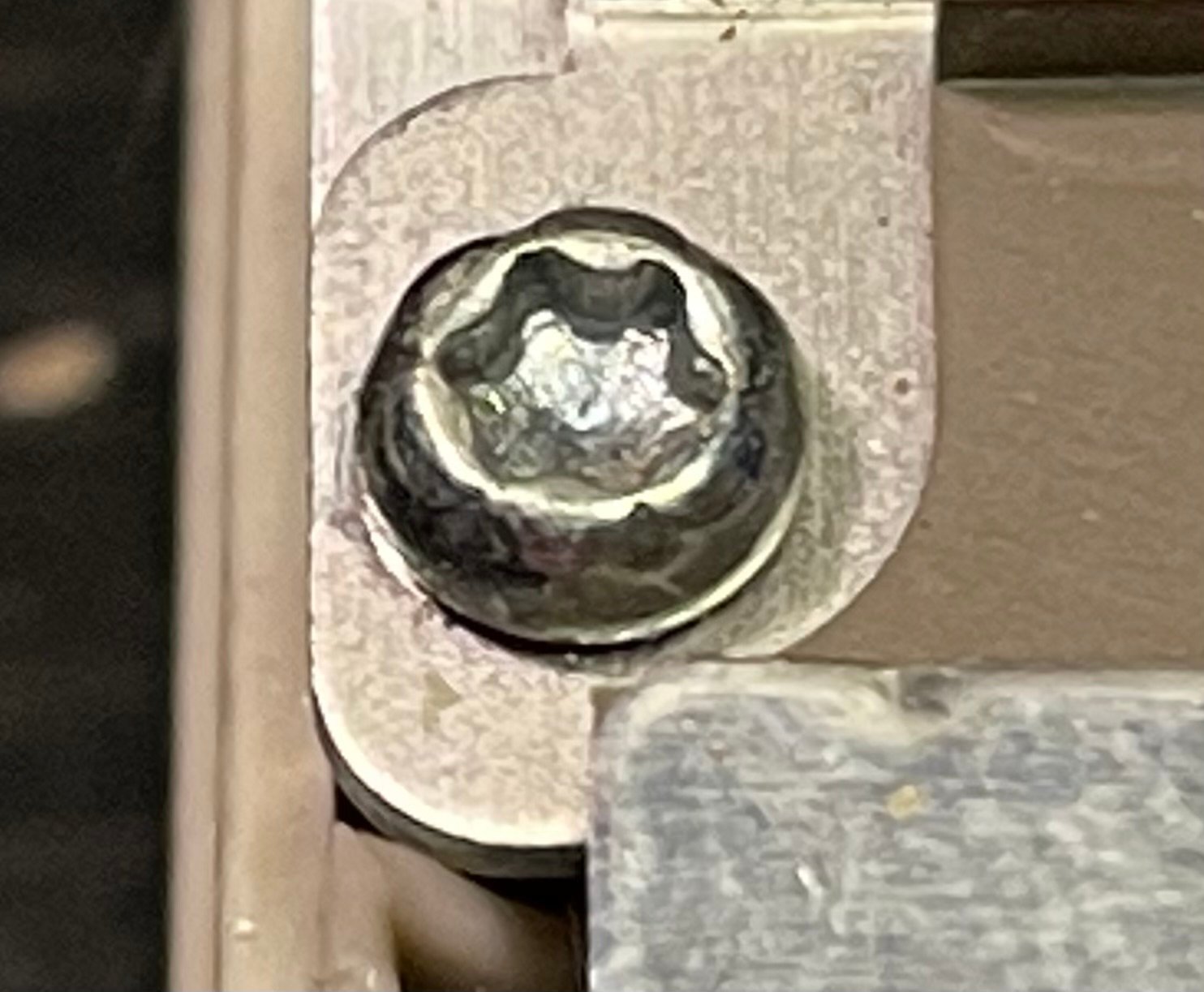 Pour remplacer les vis manquantes, celles existantes sont des vis à tête torx et un filetage M2,5 de 4,5mm de profondeur.