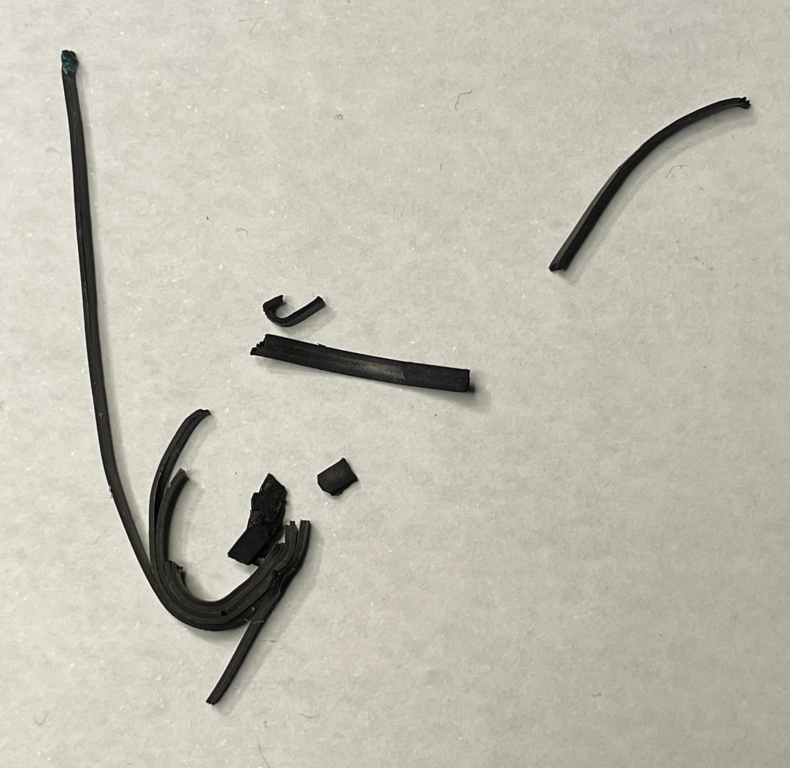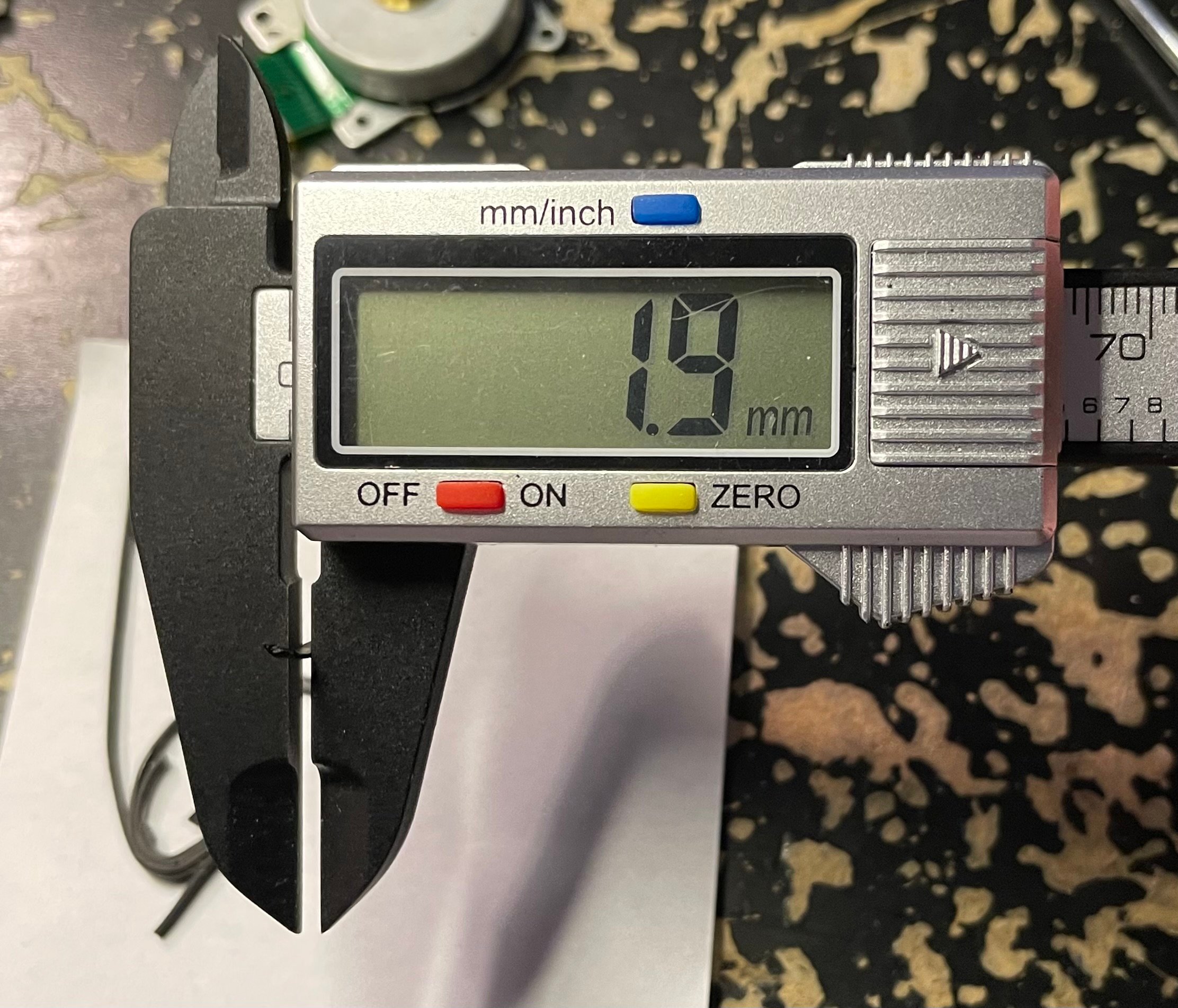 A partir des restes de courroies, j'ai pu déterminer que l'ancienne courroie avait une épaisseur de 0,4 mm et une largeur de 1,9 mm.
