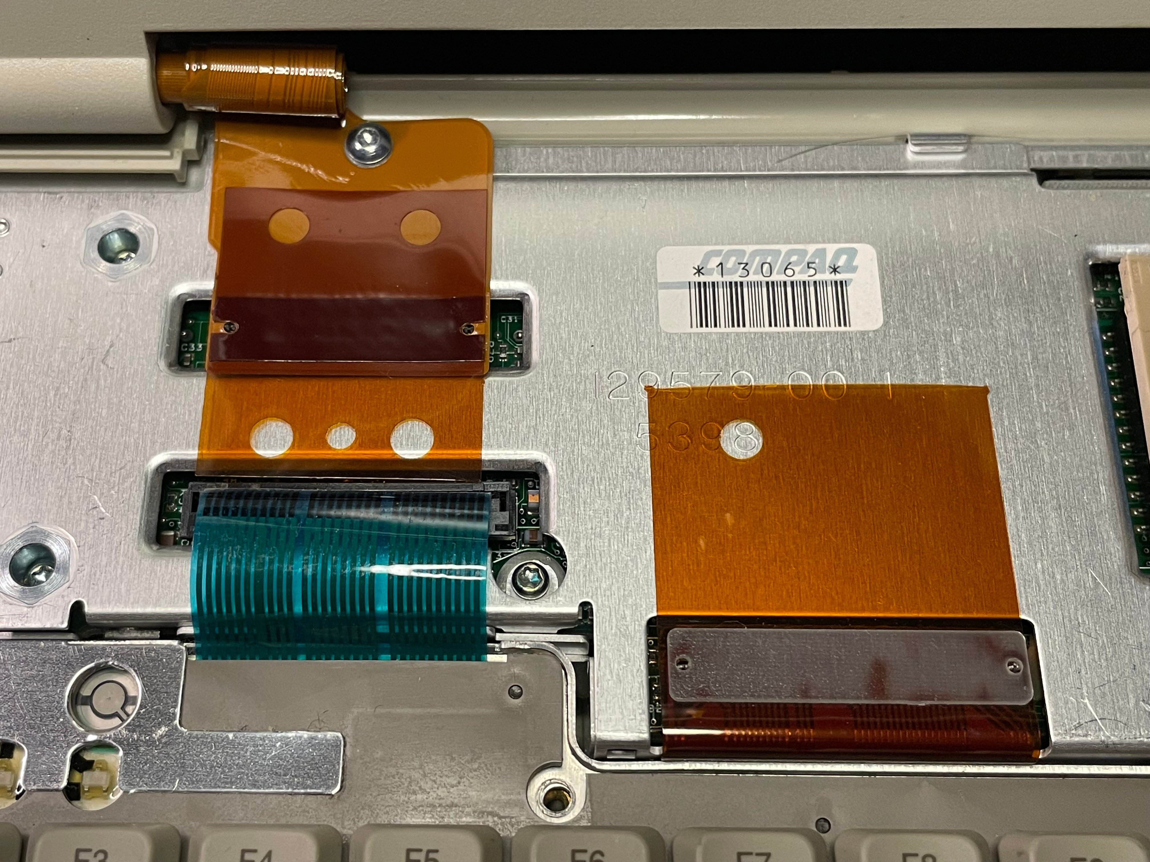 Après avoir retiré les vis, le clavier peut être levé et rabattu doucement sur l'écran.