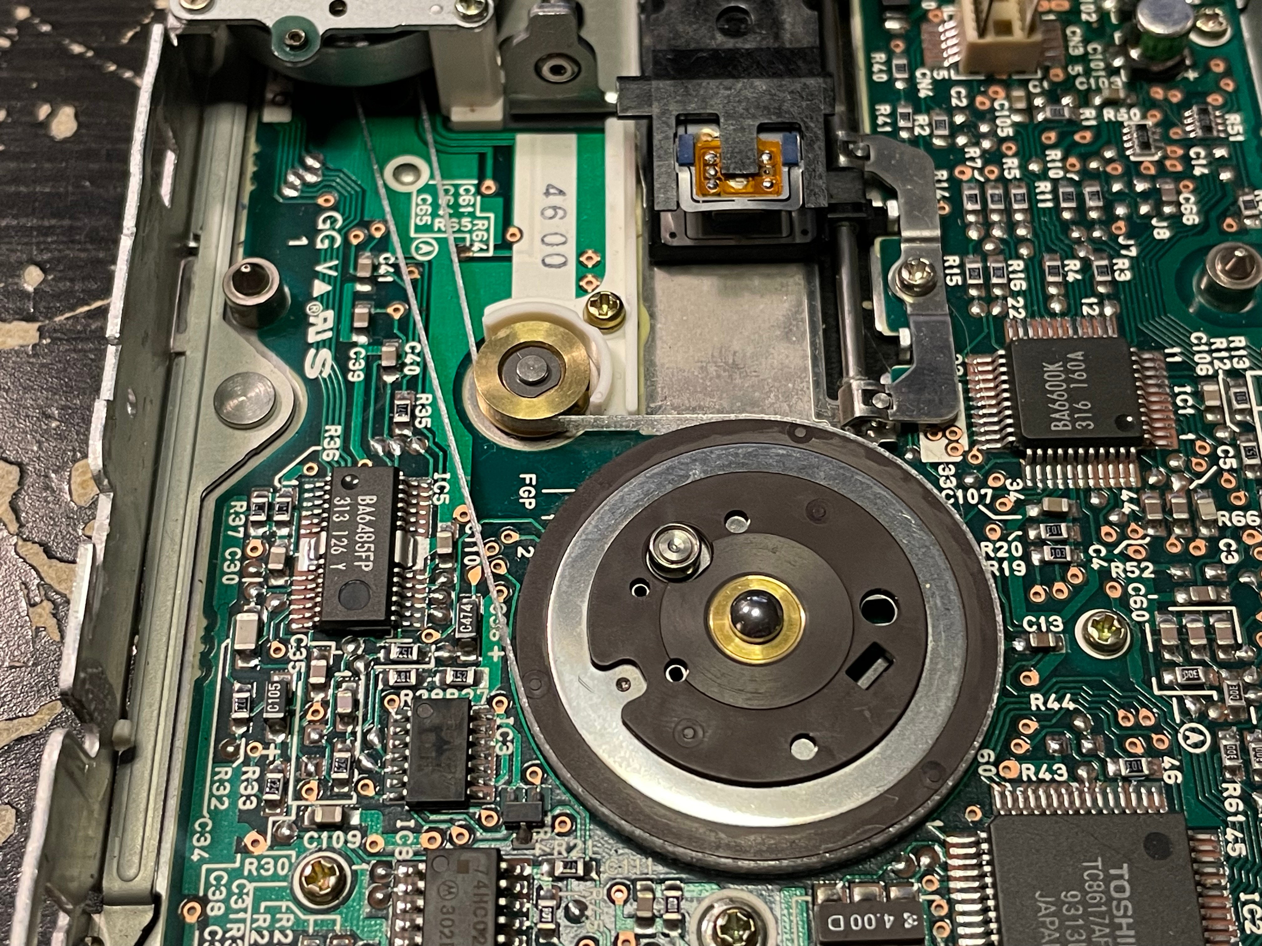 J'ai fait un essai mécanique en rebranchant le lecteur sans remettre ce qu'il faut pour accueillir une disquette juste pour voir comment tourne la nouvelle courroie.