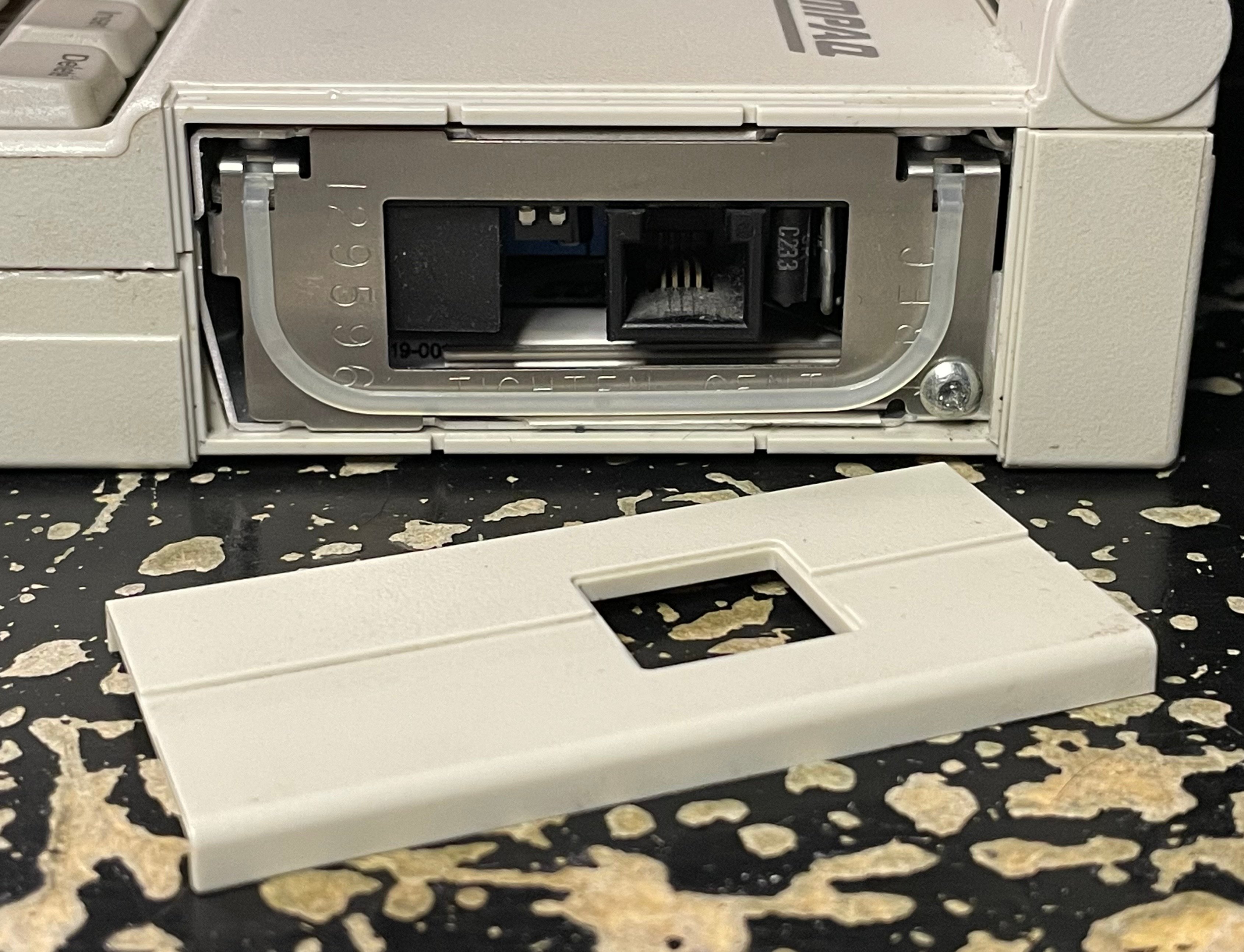 Comme premier élément de coque à retirer, il faut commencer par le cache de l'interface réseau optionnelle à droite de la machine.